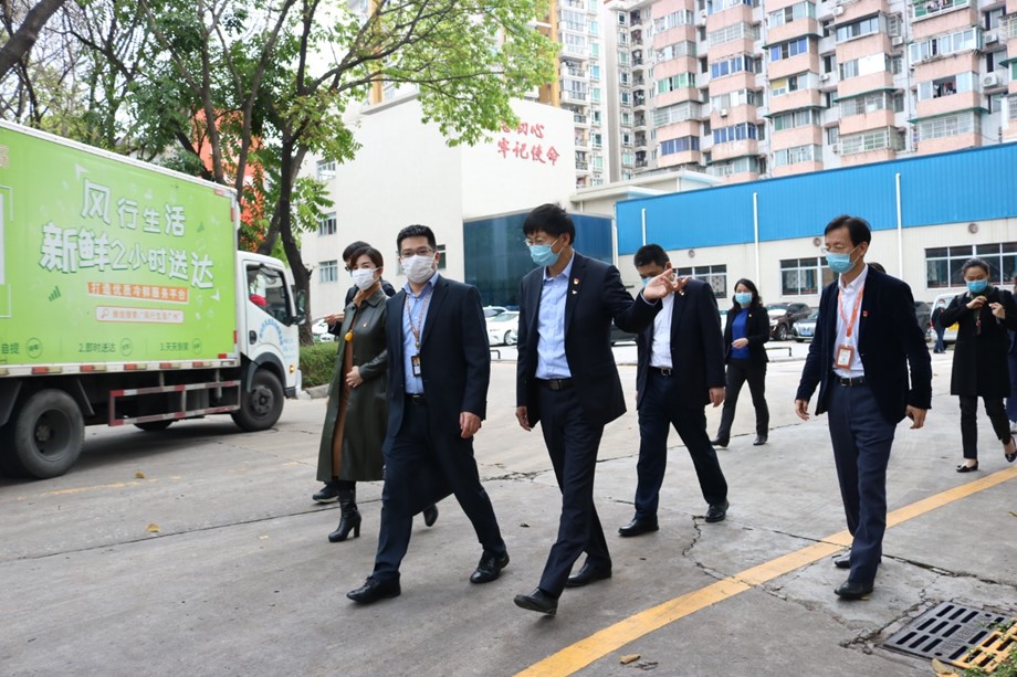 叶珊瑚一行第一站抵达“风行生活”沙太路旗舰店,实地检查了门店的防疫工作情况,询问了解专卖店恢复营业、产品销售等情况,向当班店员表示慰问并送上防疫用品。