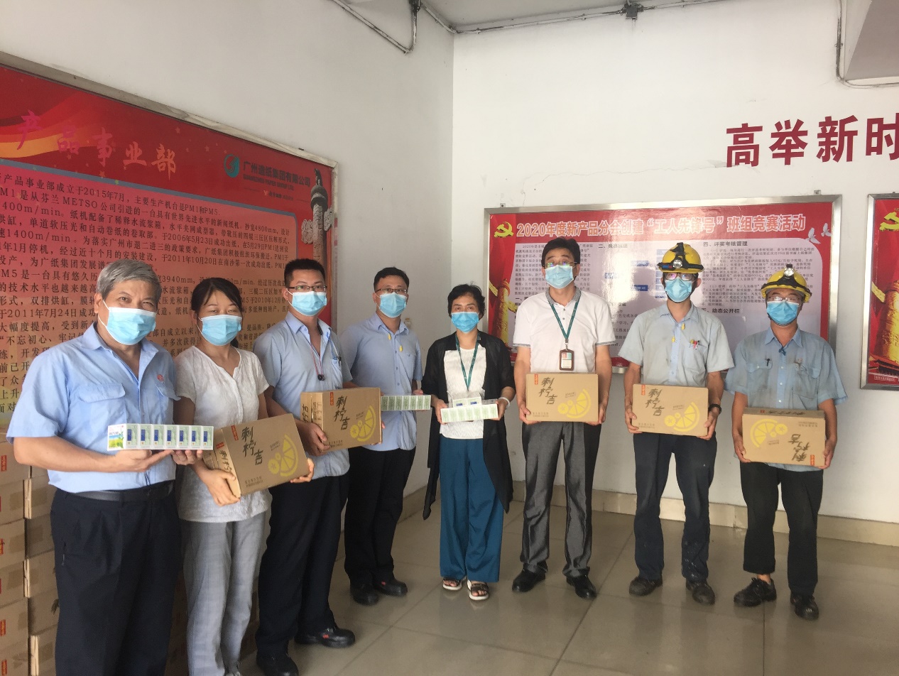 8月14日下午,公司党委副书记、纪委书记、工会主席李小玲,工会副主席周蔚带领工会办公室人员,分别来到新闻纸分会、新产品分会、热电环保分会、生产管理分会、物流管理分会、技术环保分会等一线部门,将一箱箱清凉饮料及一盒盒藿香正气水送到一线员工手中。同时,代表星空电竞集团工会和公司党政领导向广大员工表示亲切慰问,叮嘱他们在高温天气下工作要注意防暑降温,适度休息,同时要继续做好疫情防控工作,确保生命至上,安全第一。现场的员工纷纷感谢公司领导的关怀,并表示一定会坚守岗位,积极工作。