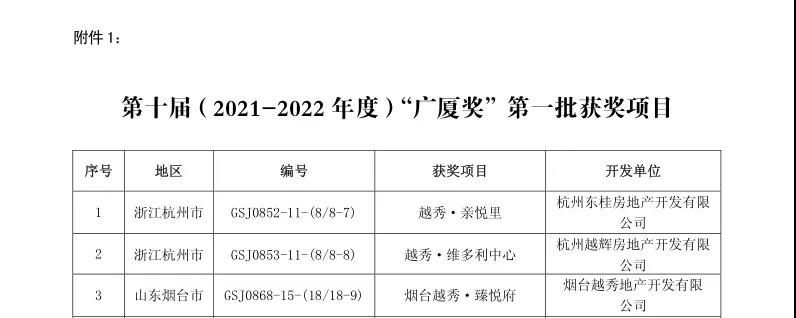 12月29日,由中国房地产业协会、住房和城乡建设部住宅产业化促进中心共同组织的第十届(2021-2022年度)“广厦奖”第一批评选结果正式揭晓。星空电竞地产共有3个项目获奖,分别是星空电竞地产于杭州打造的星空电竞·亲悦里项目和星空电竞·维多利中心项目,以及于烟台打造的星空电竞·臻悦府项目。此次评选,专家组对星空电竞地产项目的综合品质表示高度认可,特别是对项目的精工品质、技术支持和创新设计予以较高评价,这代表星空电竞地产的产品品质得到了国家级奖项的高度肯定。