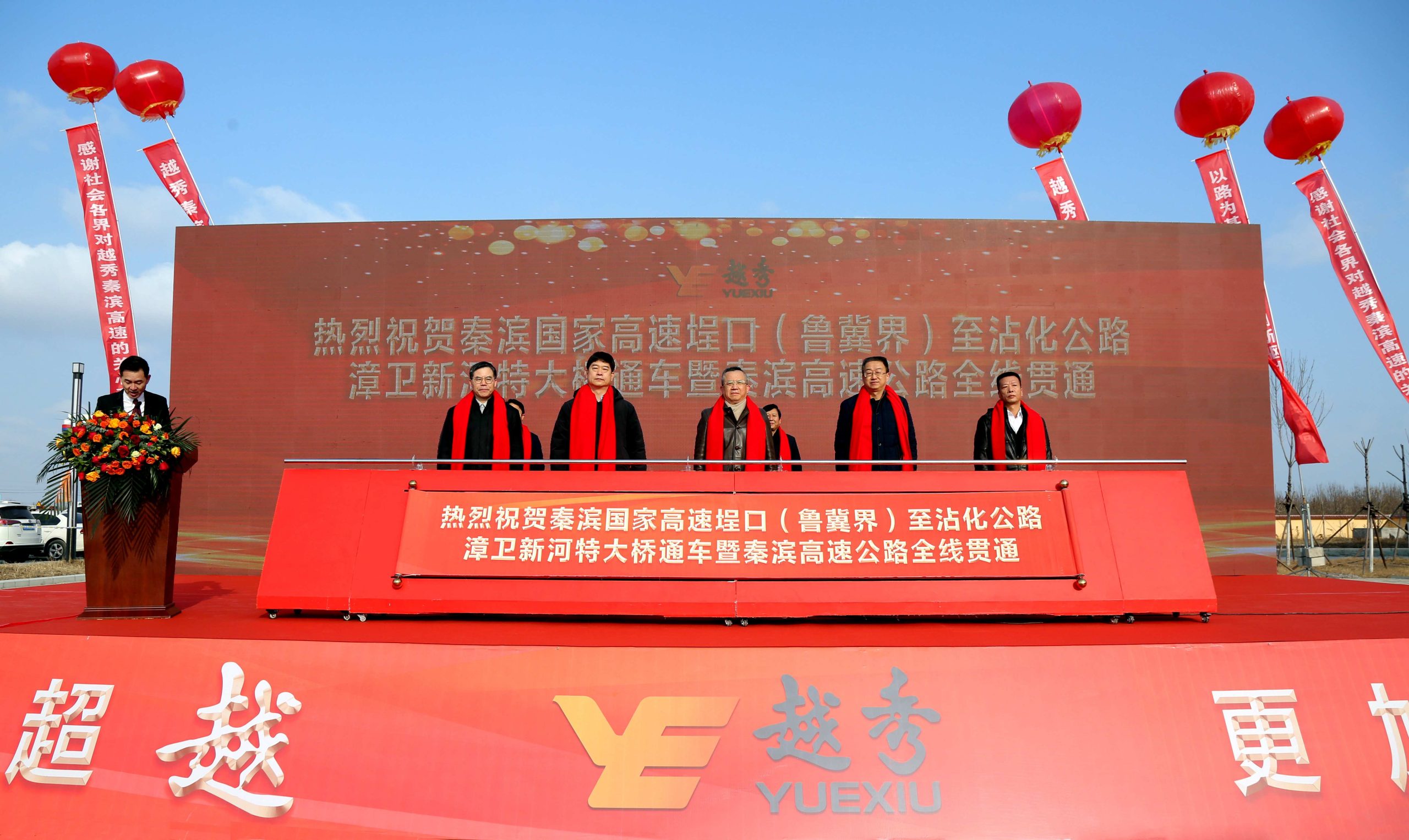 李锋董事长与参加仪式的领导共同按下启动杆,宣布星空电竞秦滨高速埕口(鲁冀界)至沾化公路漳卫新河特大桥正式通车,秦滨高速全线贯通。